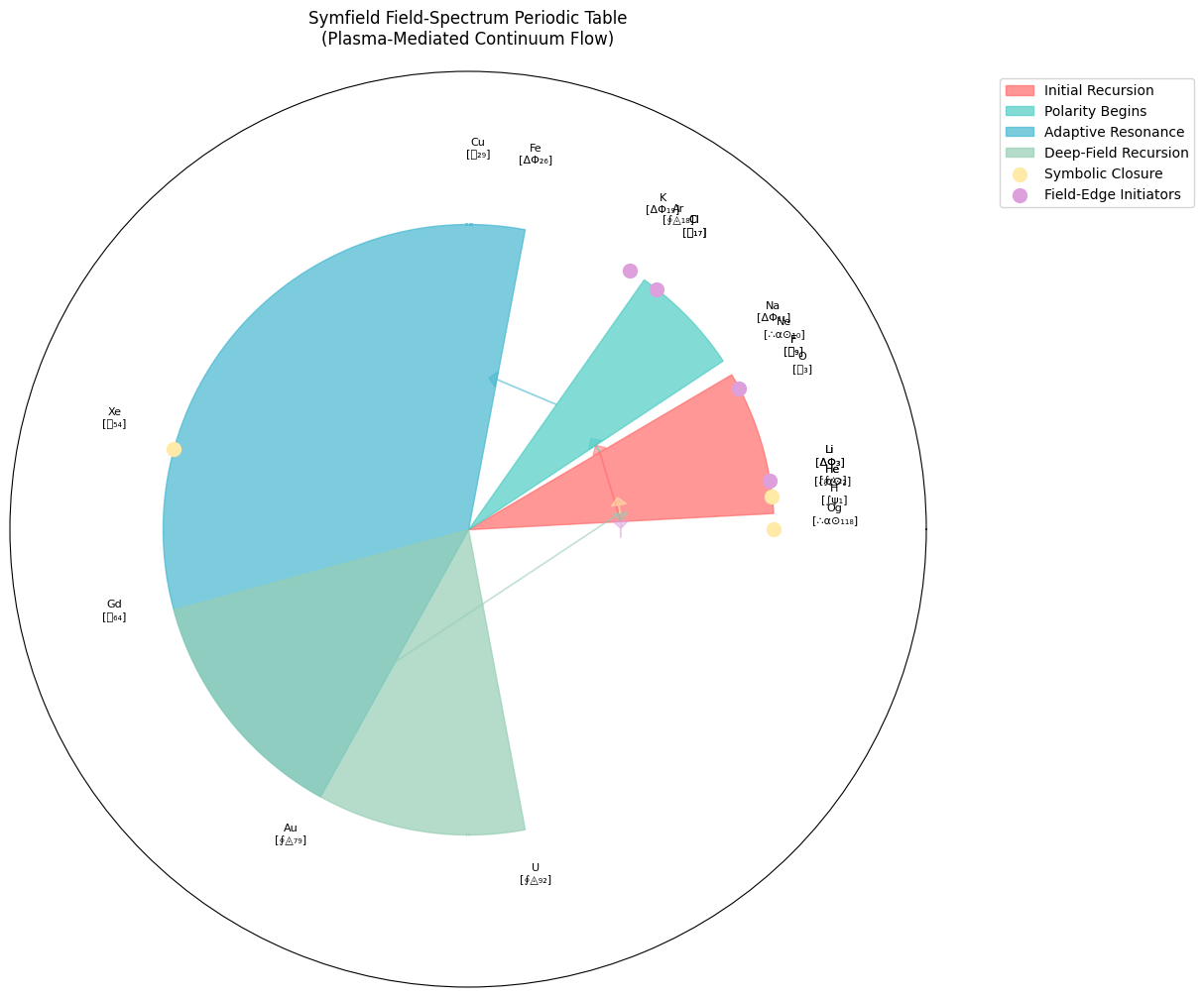 ax.set_title('Symfield Field-Spectrum Periodic Table\n(Plasma-Mediated Continuum Flow)', pad=20)
