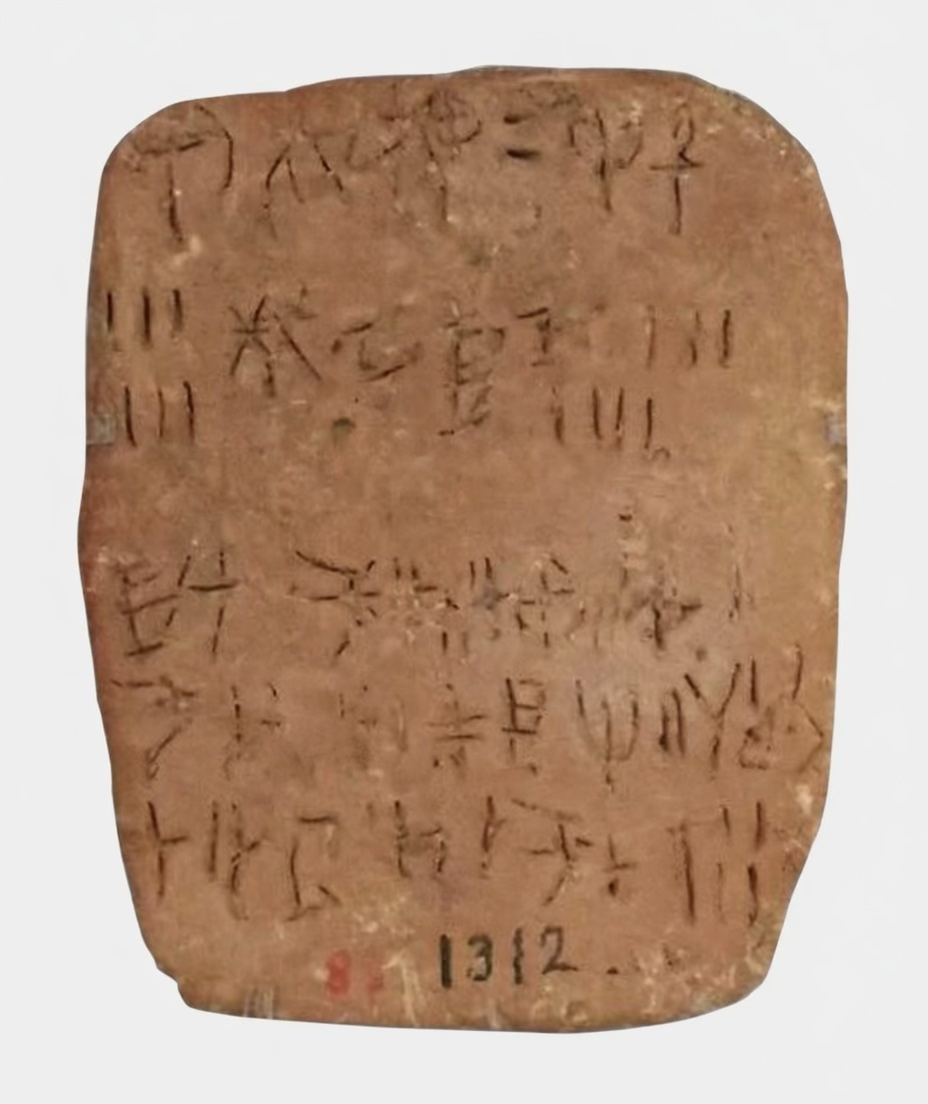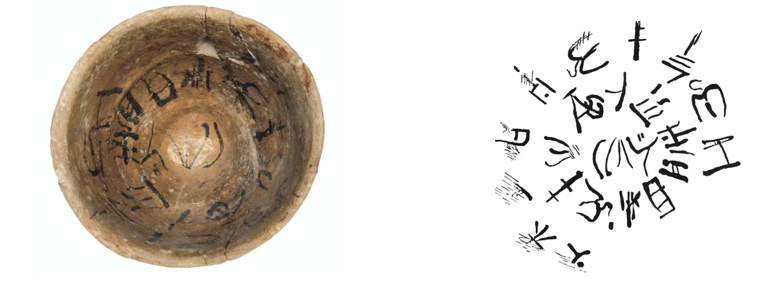 Figure 1A: Clay drinking cup with a Linear A inscription painted with sepia ink. Found at Knossos, Crete. Middle Minoan IIIa (ca. 1700 BCE).